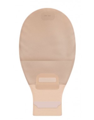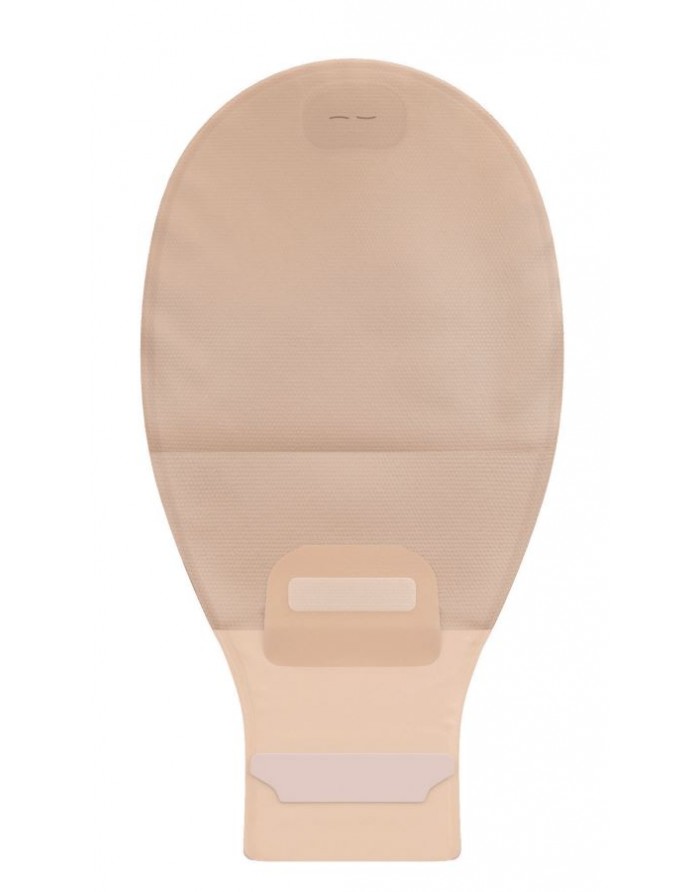 Worek otwarty beżowy, pokryty delikatnym hydrofobowym materiałem niepochłaniającym wilgoci. Wydajny filtr węglowy minimalizuje „balonowanie się” worka i neutralizuje nieprzyjemne zapachy. Posiada szczelną, rzepową zapinkę InvisiClose® do zakmnięcia odpływu worka. Kieszonka do schowania zamkniętego odpływu worka skraca worek i czyni go bardziej dyskretnym.